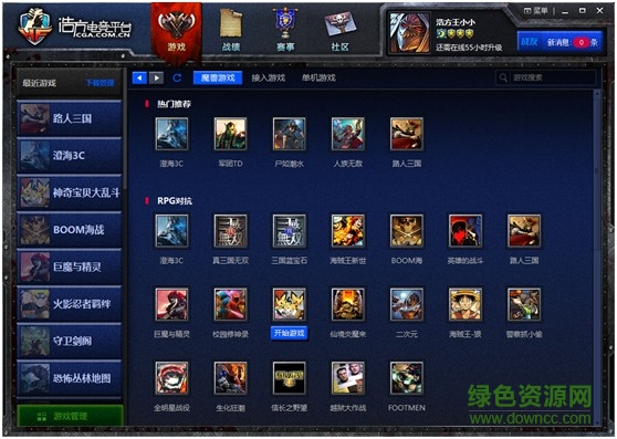首先下载浩方新平台,解压双击进入新平台主界面,即可看到平台功能导航栏、左侧游戏管理栏、联机游戏和右侧最近游戏栏。