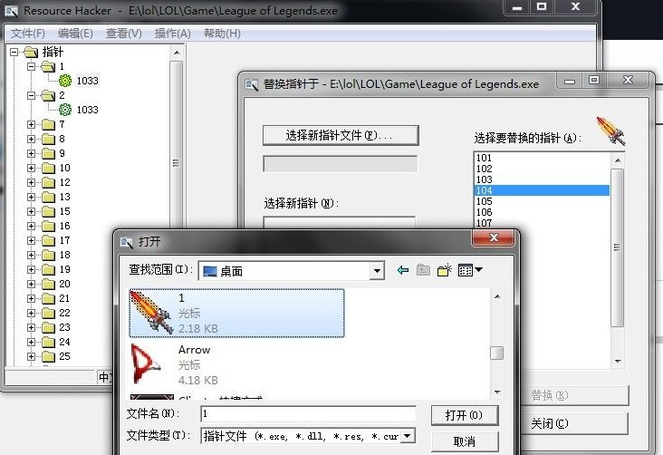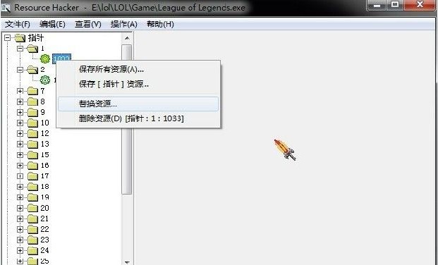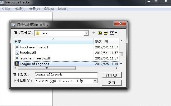 2..用ResHacker打开英雄联盟根目录GameLeague of Legends.exe 文件;