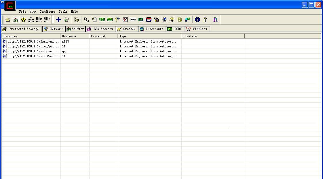 Cain4.9汉化版是32位、64位通用版,这是一个可以crack屏保、PWL密码、共享密码、缓存口令、远程共享口令、SMB口令、支持vnc口令解码、Cisco Type-7口令解码、Base64口令解码、sql server 7.0/2000口令解码、Remote Desktop口令解码、access Database口令解码、Cisco PIX Firewall口令解码、Cisco MD5解码、NTLM Session Security口令解码、IKE Aggressive Mode Pre-Shared Keys口令解码、Dialup口令解码、远程桌面口令解码等综合工具,还可以远程crack,可以挂字典以及暴力crack,其sniffer功能极其强大,几乎可以明文捕获一切帐号口令,包括FTP、HTTP、IMAP、POP3、SMB、TELNET、VNC、TDS、SMTP、MSKERB5-PREAUTH、MSN、RADIUS-KEYS、RADIUS-USERS、ICQ、IKE Aggressive Mode Pre-Shared Keys authentications等。