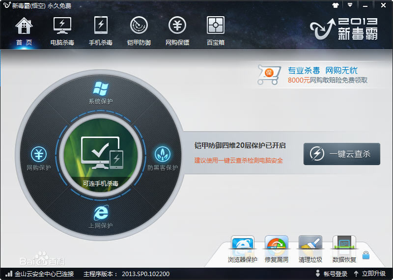 智能立体杀毒模式,杀毒修复一体化,无懈可击的安全体验。