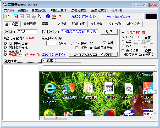5.生成FLASH动画(swf 或 flv),文件小可以在网络上方便使用,同时可以支持附带声音并且保持声音同步。最新版支持生成MP4文件和GIF文件。