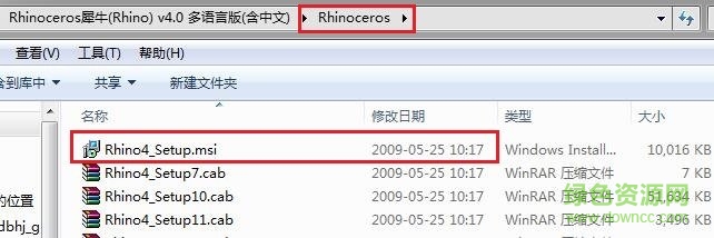 1.解压缩安装包,双击“Rhinoceros”文件夹中的“Rhino4_Setup.msi”进行安装