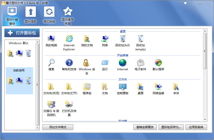 它具有图标提取、图标替换、图标格式转换和图标缓存修复功能。