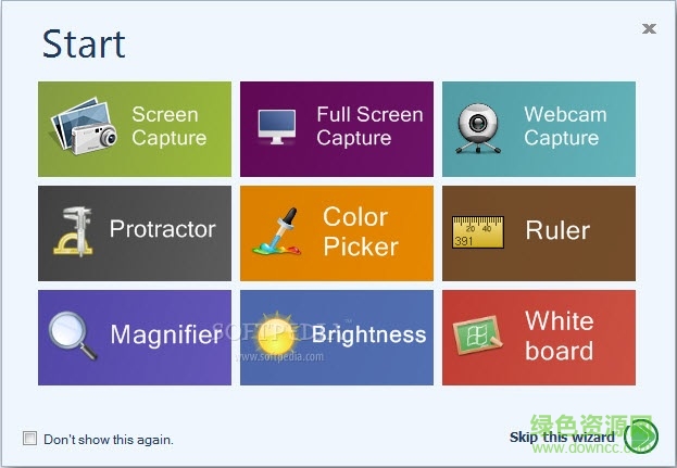 此外,该软件带有一个拾色器,放大镜和一个虚拟的标尺,以及量角器。