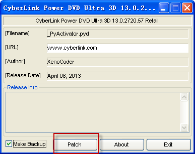 2、复制补丁至安装目录(C:\Program Files\CyberLink\PowerDVD13),右键管理员运行,打开后点Patch完成。