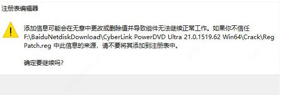 运行crack补丁文件夹内的Reg Patch.reg,导入注册表信息;