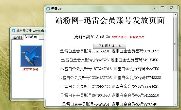2、站粉云点播还提供了“迅雷VIP获取”应用,迅雷白金账号免费发放
