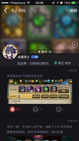 * 发帖:晒操作,晒战绩,晒逗比,轻松拥有32个赞;