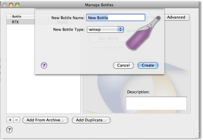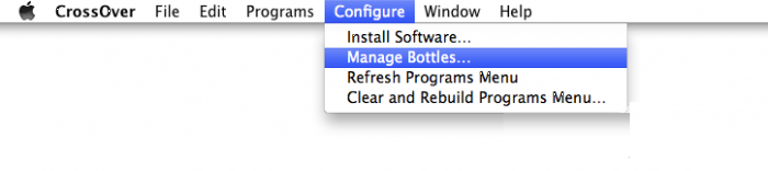 首先我们要新建立一个 Windows 的 bottle (Configuer-ManageBottles)