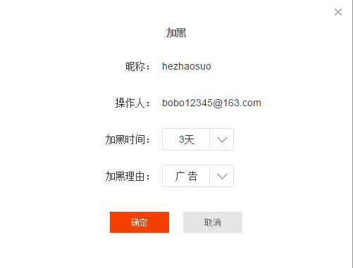【拉黑】可以在删除该帖子同时禁止该用户在该主播的社区发帖。可以选择加黑的时间和理由。