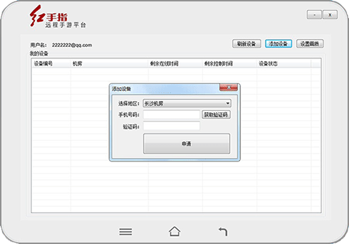 第三步:点了添加设备后。这里需要输入手机号码。点获取验证码。等手机收到验证码后。输入验证码,再点申请。 (注:这是需要绑定手机的。一部手机只能申请一台设备。)