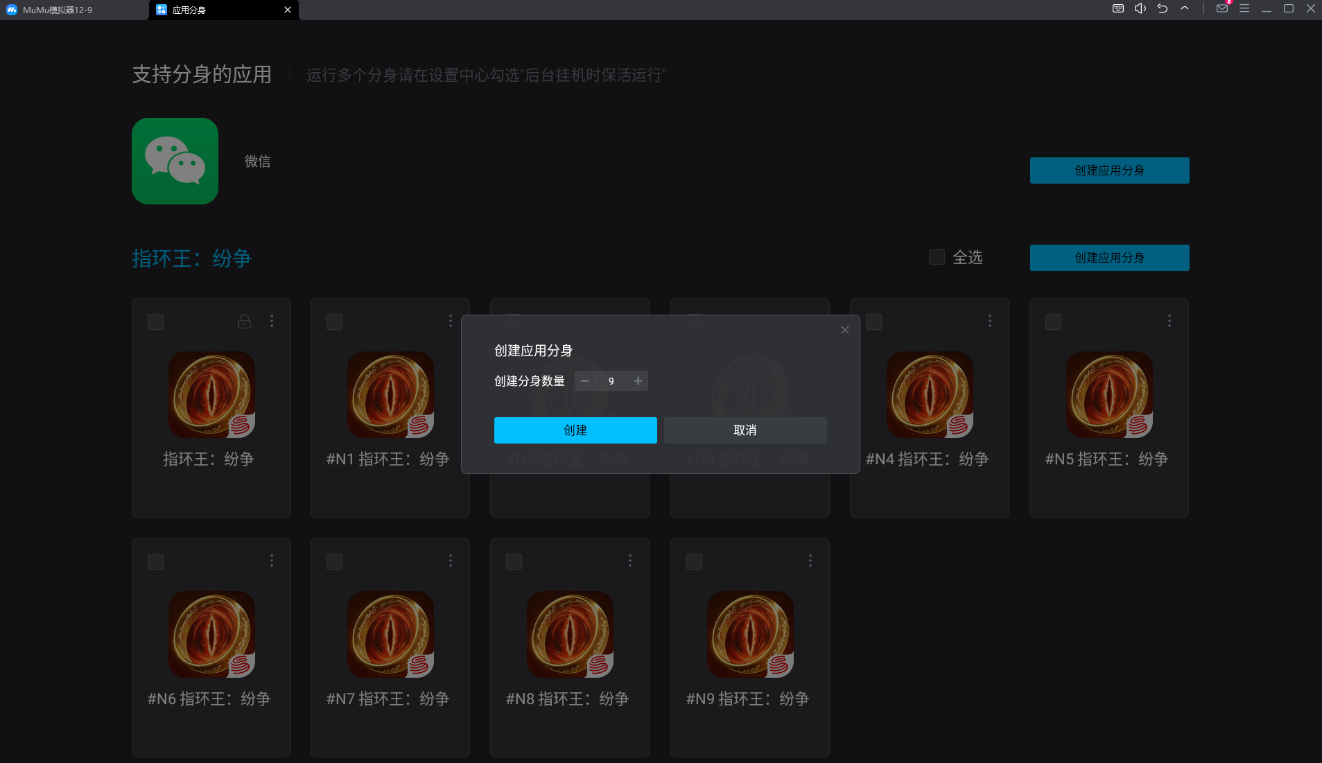 注:应用多开单次批量创建上限为9个,且多开的应用需要重新下载游戏资源。