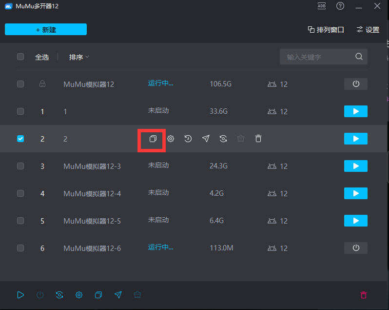 也可勾选中已安装好游戏,且未启动的模拟器,进行模拟器复制操作;