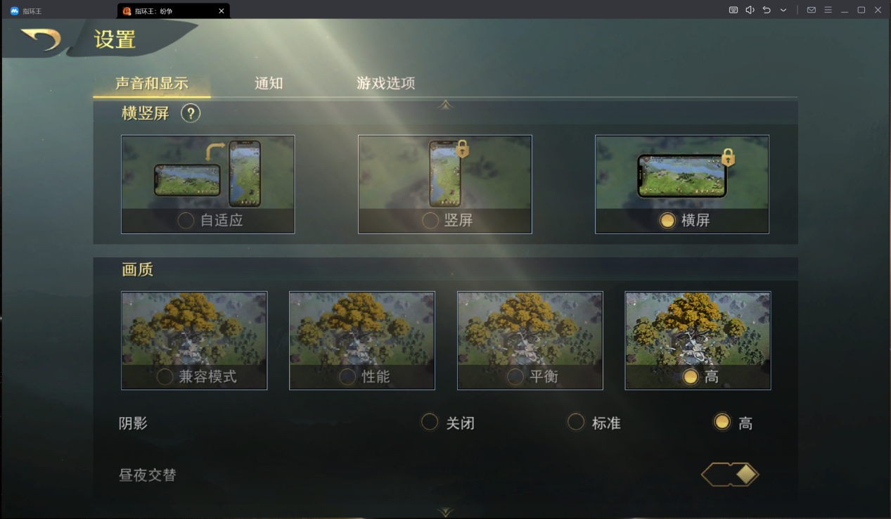 打开游戏设置界面,将横竖屏锁定为横屏,打开昼夜交替,并将画质和阴影调整为高,即可获得最佳游戏体验。