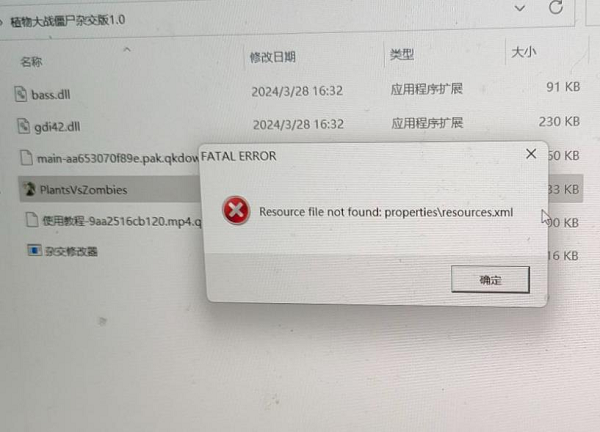 问题描述:双击启动游戏后,弹出窗口Fatal Error,找不到resources.xml文件