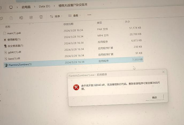 问题描述:双击启动游戏后,弹出窗口系统错误,找不到xxx.dll文件