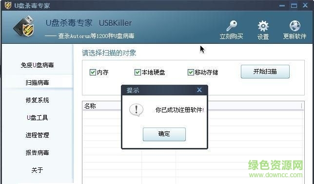 U盘杀毒专家(USBKiller)是一款界面简洁,功能强大的U盘病毒查杀工具,不仅能扫描病毒功能,扫描系统内存,本地硬盘和移动储存,还能进行系统修复,并且拥有后台自动工作能力,占系统资源极少,感兴趣就赶紧来绿色资源网下载吧!