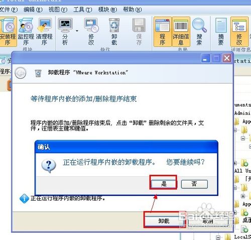 4、在卸载程序对话框中,提示单击“是”,如图