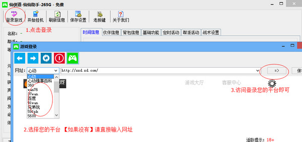 1、打开仙侠道仙仙助手,点击左上角的登录游戏