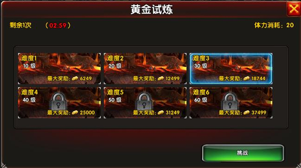日常关卡对应不同的难度等级,每个日常关卡每天可以挑战两次
