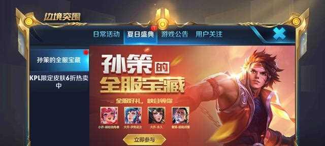 《王者荣耀》一直是国内最热门的手机游戏,其多样的英雄选择和精良的游戏设计让玩家们爱不释手。而其中的孙策英雄更是深受广大玩家的喜爱,因为他的高机动性和强大的输出能力能够在游戏中起到至关重要的作用。本文将以《王者荣耀》2023年孙策攻略为主题,为广大玩家提供详细的游戏操作指南,帮助大家更好地掌握孙策这个英雄。
