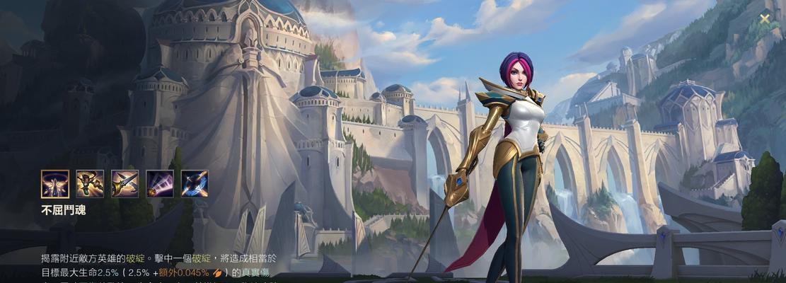 3.破败之刃:降低敌人的护甲,增加剑姬的物理攻击,并提供生命回复效果,使剑姬更加持久。