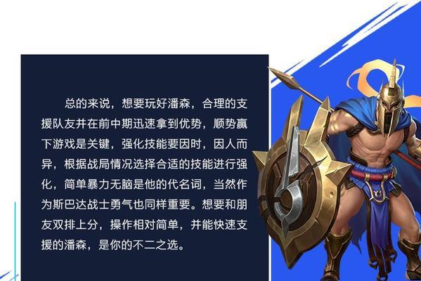 在手游《潘森》中,潘森作为一名近战AD刺客,在团队战斗中有着不可忽视的作用。而在游戏中选择适合的装备配置,将直接影响到潘森的输出和生存能力。本文将以手游潘森3.2版本为例,为大家详细介绍如何合理选择出装,提升潘森的实力。