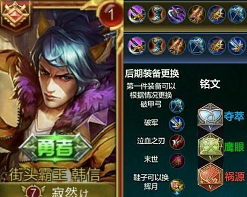 韩信作为《王者荣耀》中的强力英雄角色,拥有出众的机动性和爆发能力,成为众多玩家追逐的目标。本文将为大家介绍如何在韩信的职业代打中选择合适的出装,并给出详细的攻略,帮助玩家提高战斗技巧和胜率。