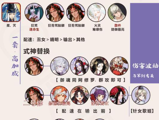 在选定了合适的式神之后,我们需要将他们安排在合理的阵容中。建议选用两个输出、两个控制、一个治疗的阵容。治疗式神可以选择雪女、酒吞童子等等。
