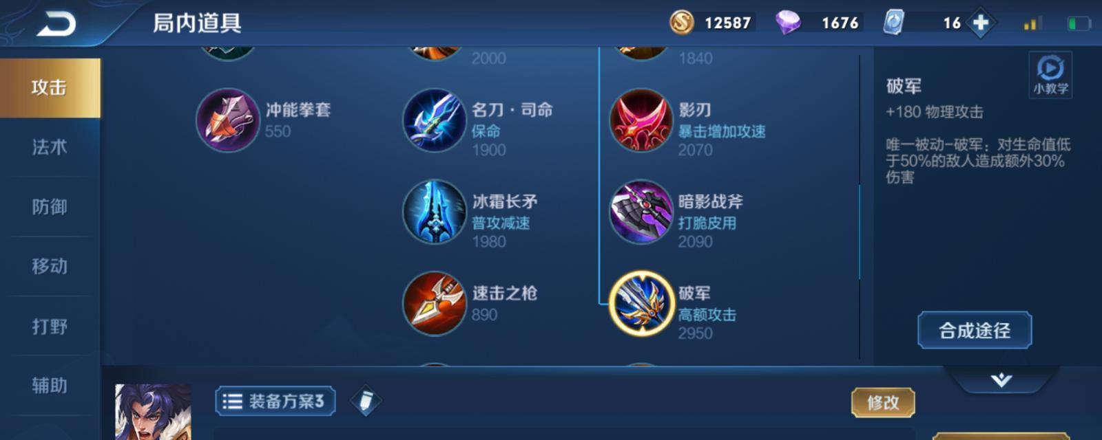 15.破军配合物理穿透铭文:提高项羽对敌方护甲的穿透能力,使其对坦克英雄造成更高的伤害。