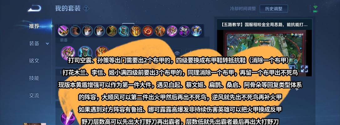 1.根据游戏中的对手选择适合的铭文搭配和装备