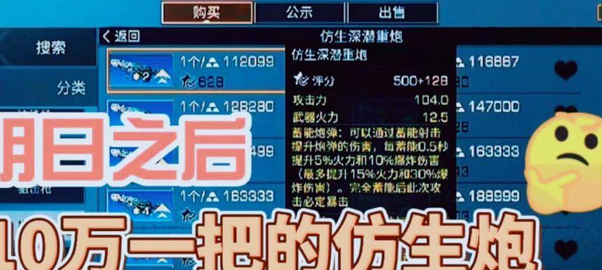 明日之后是一款非常火爆的生存游戏,拥有着海量的玩家和丰富的内容。其中,深潜重炮是游戏中最强的武器之一,拥有着强大的攻击力和范围,是玩家在游戏中必备的装备之一。然而,由于其制作难度较高,在游戏中获取深潜重炮也变得更加困难。在本文中,我们将为玩家介绍一些获得深潜重炮的攻略和技巧,帮助玩家更快地获得这个强大的武器。