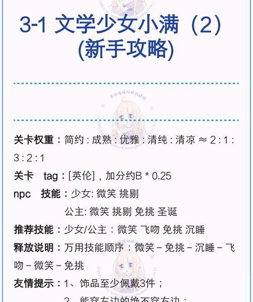 《微光少女游戏攻略大全》(一起解锁微光世界的秘密,打通全程攻略!)
