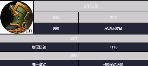 阿轲需要在游戏初期快速发育,提升自己的爆发能力和生存能力。在装备选择上,首选影忍之足,可以增加阿轲的物理防御和移动速度,提升其生存能力和机动性。