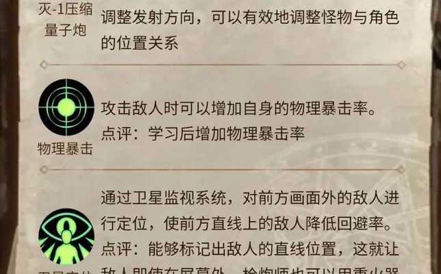 作为一款热门的角色扮演游戏,《枪炮师》以其华丽的技能特效和爽快的射击操作吸引了大批玩家。在游戏中,正确地加点技能是成为顶尖射手的关键。本文将为大家介绍《枪炮师》的技能加点攻略,帮助玩家掌握正确的技能分配策略,让你在战场上无往不胜。