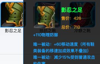 为了提高廉颇的机动性和团队作战能力,选择一双影忍之足是明智之选。它不仅能够提供额外的移速和物理防御,还能够减少廉颇受到的控制效果时间,并且降低受到的伤害,使其更好地保护队友。