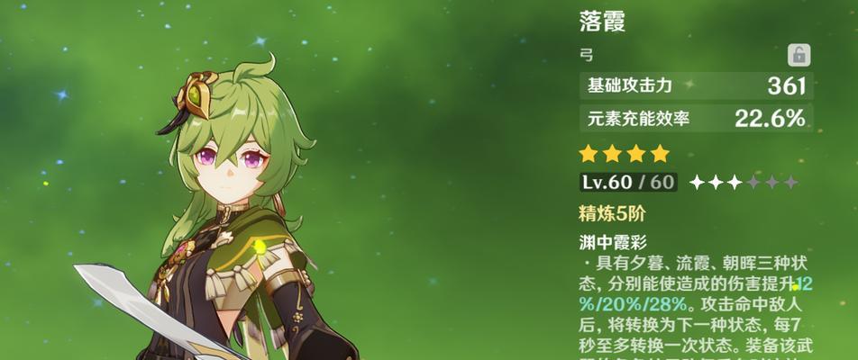 在《原神》游戏中,拥有一把好的武器对于角色的实力提升至关重要。其中,落霞弓是游戏中极为受欢迎的武器之一,本文将为大家详细介绍如何获取落霞弓以及突破所需材料。
