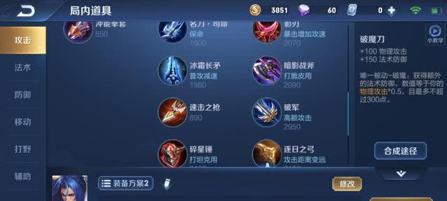 第三件装备:破魔刀,增加高渐离的法术防御