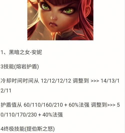 作为一名游戏爱好者,你可能会对黑暗子女安妮这个英雄角色产生兴趣。安妮是《英雄联盟》中的一名法师角色,以她可爱的外表和强大的技能而广受玩家们的喜爱。本文将为大家提供一份完整的黑暗子女安妮出装攻略,帮助你在游戏中更好地使用这个英雄角色,提升你的游戏实力,击败敌人无往不利!