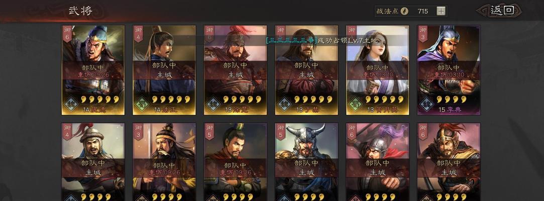 配将搭配也是非常重要的一部分。不同的配将搭配会有不同的效果,比如说攻防兼备、谋略与支援相辅相成等等。我们需要根据自己的需求来选择适合自己的配将搭配。